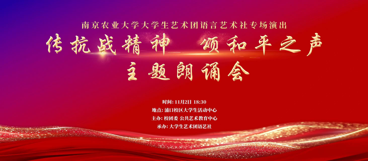 2025年11月2日晚 ,由校团委和公共艺术教育中心主办的“传抗战精神·颂和平之声”主题朗诵会在浦口校区大学生活动中心圆满落下帷幕。本次活动以朗诵为媒介,以历史为脉络,通过三个层层递进的篇章,引领在场师生共同回顾那段烽火岁月,感悟抗战精神,传递和平信念。